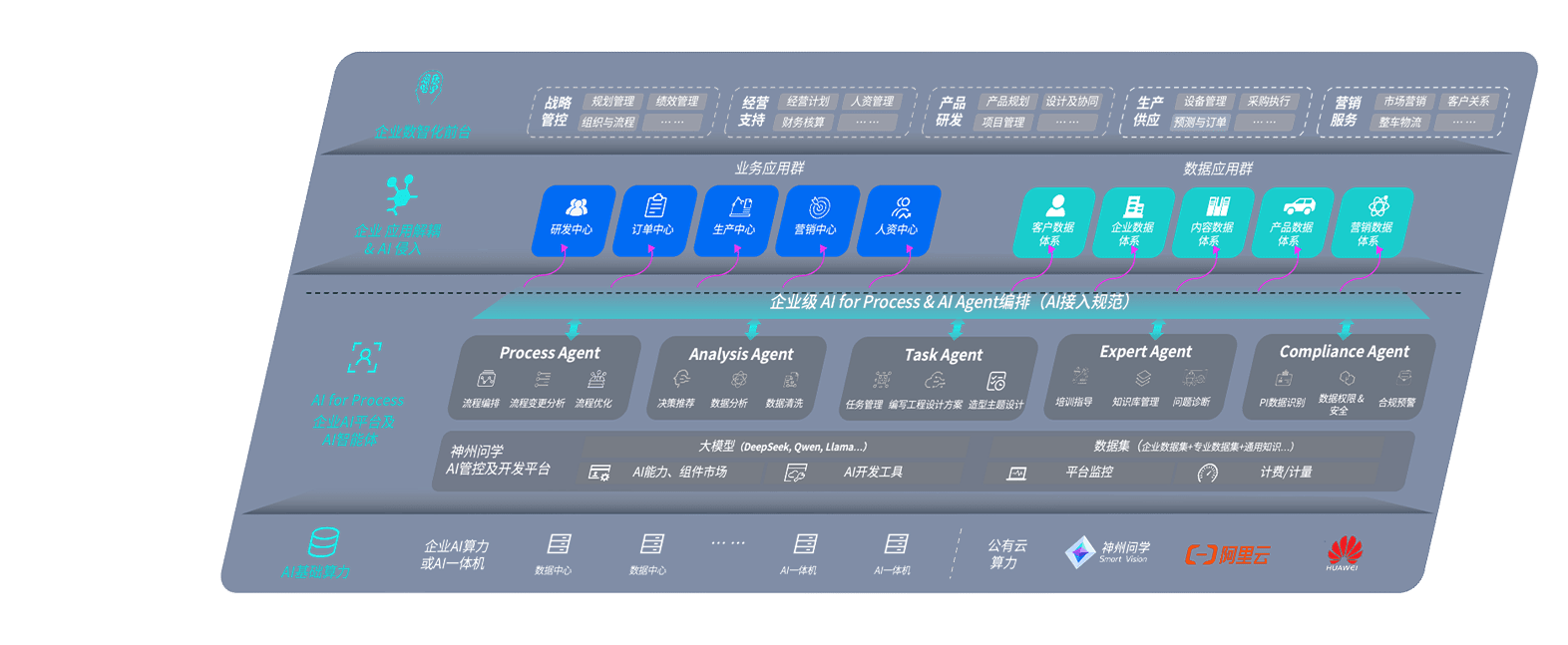 TOP1体育问学智车解决方案是一套基于AI技术的汽车行业智能化系统,,,覆盖从底层算力到顶层AI应用的全栈方案。。。方案由算力层、、、模型层和应用层组成:算力层,,方案支持多种一体机配置,,具备云端灵活部署、、、多云适配以及动态优化计算资源的能力;模型层,,,TOP1体育问学平台版提供了企业级AI应用一站式构建与管理平台,,,支持基于后训练强化技术的汽车企业专属模型的训练、、、评测和运营;应用层,,,,TOP1体育问学DeepSeek版提供包括超级员工、、、智能招采、、、、智能营销、、、智能客服、、AI for BI等一系列解决方案,,可助力汽车行业实现数字化转型,,,,让管理更智能、、、响应更敏捷。。。